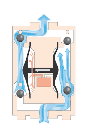 - | A diaphragm pump powered by a pneumatic cylinder. |