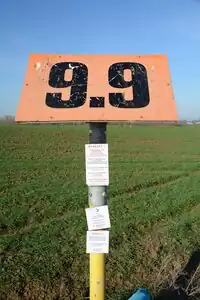 An orange aerial marker for Total pipeline network in Belgium |