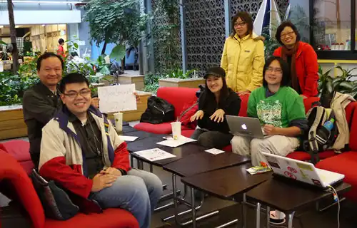 13:50 Supaplex到達臺大第一學生活動中心,並拿出NTU Mapping Party的牌子,不過沒有人出現。SHangkuanlc從圖書館過來,選擇活大裡的沙發區,於是開始這次的Mapping Party。
