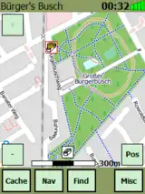 OpenMobileMaps is a moving map application similar to Google Maps, but it is using OSM data instead. If a data connection is available, it automatically downloads tiles and allows to search for places. In offline mode it shows cached map-tiles. If a GPS device is available, the current position can be shown on the map and the map automatically moved.