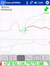• OziExplorerCE ($ 95 / ??? 69 for life-time license). Runs on various handheld devices starting with Windows CE 3 through Windows Mobile 6+ and CE.net. An unregistered version will require manual GPS communication restart every 20 or 10 minutes. Can be used with any raster map - scanned or converted. Track logs and POIs are compatible with GPSBabel. The GPS recordings will be in NMEA format. If you need the recorded track as a GPX file (for example when you want to upload the recorded tracks directly to the OSM-server) have a look at converting NMEA to GPX.
