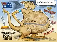 His cartoons lack any sort of subtlety, exemplified by the excessive labeling. According to Garrison's Law: The more labels you have, the more effective your cartoon is.