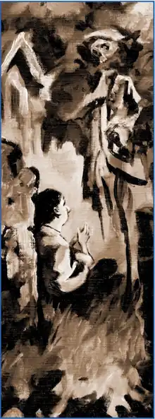 Despite his exhaustion, as the two talked late into the night, he found his hands itching to work. The longer they talked, the clearer his idea grew. When they finally parted, he stayed up until the early hours of dawn, feverishly coaxing the form in his head out of the wood. He managed to finish in a single night what should have taken him days, and in the morning he proudly showed off his work to the old woman.