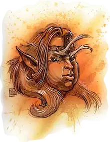 In her human seeming, Cadmium is a large, imposing woman in her late forties. She has severely pulled-back hair that is beginning to grey and she usually wears red business suits. In her fae mien she bears an unsettling resemblance to the Red Queen from Through the Looking Glass. Her skin is lobster red and tight as a drum while her hair is stark white. She always has an imperious look on her face. Her clothes are richly designed, if with a severe outline... lots of sharp angles. Her favorite jewelry is rubies, of course, and she wears a ruby tiara as the symbol of her office. She carries a large and imposing iron rod with a leather wrapped handle and topped with a ram's head. The ram has ruby eyes which glow in battle. She wears a suit of armor made of red gold in battle where she becomes a shrieking, cursing, spitting, whirling dervish. She can win most battles through intimidation alone.