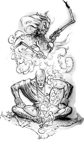 The Chu-ih-yu are the warriors of the Kamuii. Forever just and fair-minded, they are forces of lesser Yin, revering the West, the autumn, and the color White. Many serve as high-ranking administrators in the Li Shen as part of the Tieh Fu (Ministry of Metal). Their domains are not only mines of precious minerals but they also temples with precious bells and gongs and museums with ancient weapons. They are objective to a fault and will bring any wrong doer to justice with a punishment fitting the crime. Extenuating circumstances mean little to the Metal Lords and they uphold an Eye for an Eye mentality. Fearless in battle, they are famed for their bravery and many foes will think twice about attacking a group of Hsien with a Chu-ih-yu among them. Once they make up their mind, little can distract them from their goal.