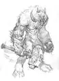 According to myths in the Garou Nation, Great Fenris was the Ahroun of the First Pack. Drawn to battle the giants of the Wyrm in the far Northern reaches of the world, Fenris refused to bring offspring into the world, for he felt that no mortal woman was strong and pure enough to be worthy to be his mate. In battle against the gigantic Jotunn, he beheld the first woman to ever catch his attention: the giantess Sigun of the Vanir people. Fenris pursued her into her homeland, where he proposed to her. Sigun told him that she was already betrothed to a frost giant, and Great Fenris, infuriated, challenged the giant to a duel. After a long and hard battle, Fenris proved to be victorious, but fell into unconsciousness. After being nursed back to health by Sigun, Great Fenris tested her honor, her wisdom, and her courage before taking her as his mate. From their union, Sigun bore Fenris three sons: Garm, an unrivaled skald; Rábjórn, heir to his father's fighting prowess; and Frode, who was the wisest among them. From these three, the Get of Fenris, named the Fenrir during these days, would be born. Tales from other tribes that the Get are descended from a line of Silver Fangs are regarded as propaganda and lies.