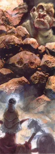 The war got bigger the longer it went... even people lobbing mountains at each other, so the stories say. One of the Nocker tales tells of a battle wagon the size of a castle. According to the Nocker's history, the Chronicle of the Black Mountain, the fae finally beat the fomorians at the Battle of Moytura. The enemy flooded the Nocker caves in the final days of the war and were as good as the Nockers at mine-fighting but the Nockers collapsed a few tunnels and sealed them off for good and as far as anyone knows they are still there, (may they rot in peace).
