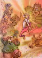 The Nocker perspective is unique among the Kithain. Born half from the luminous joy of creation and half from the darkness despair of frustration, the Nockers spend their existence in a manic state. They wrestle with the forces of total artistic abandon and the inability to accomplish anything "just right." They are, so, necessarily a little mad.