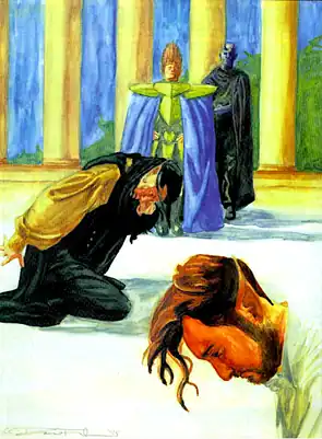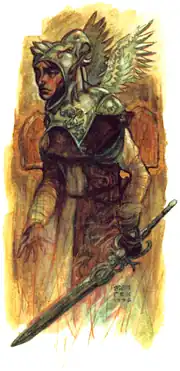 I shudder to think what path the war may have taken after Dyfell's death. For all his military victories, Dyfell was a civilizing influence on the war. He conducted his campaigns with honor and often his foes replied in kind. Still, there were many Kithain on both sides of the conflict who wished for nothing less than the complete annihilation of the other side. These angry voices are with us still, hut they were much stronger in chose days. I truly believe that they may have gained control of the war if it were not for the appearance of your father. The High King was merely a boy in those days, just one of the many childling refugees from Arcadia. He was one of True Thomas's charges and I had met him once or twice before. My impression of him even then was that he was an extraordinary little boy, though, of course, I had no inkling of his true Dán.