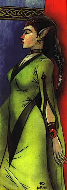 The Sidhe resemble humans of unearthly beauty; their bodies are perfect, their features pleasing, and their hair richly colorful. They are ethereal and carry a hint of sadness even when they laugh. Tall and lean, they are fierce and regal, with tapering, pointed ears, angular features, and a commanding gaze. Their eyes are odd yet striking colors, such as violet or silver. They rarely wear anything but the finest clothes.