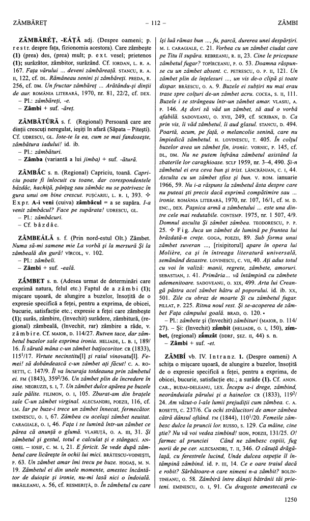 - “zâmbet”, in DEX online—Dicționare ale limbii române (Dictionaries of the Romanian language) (in Romanian), 2004–2025